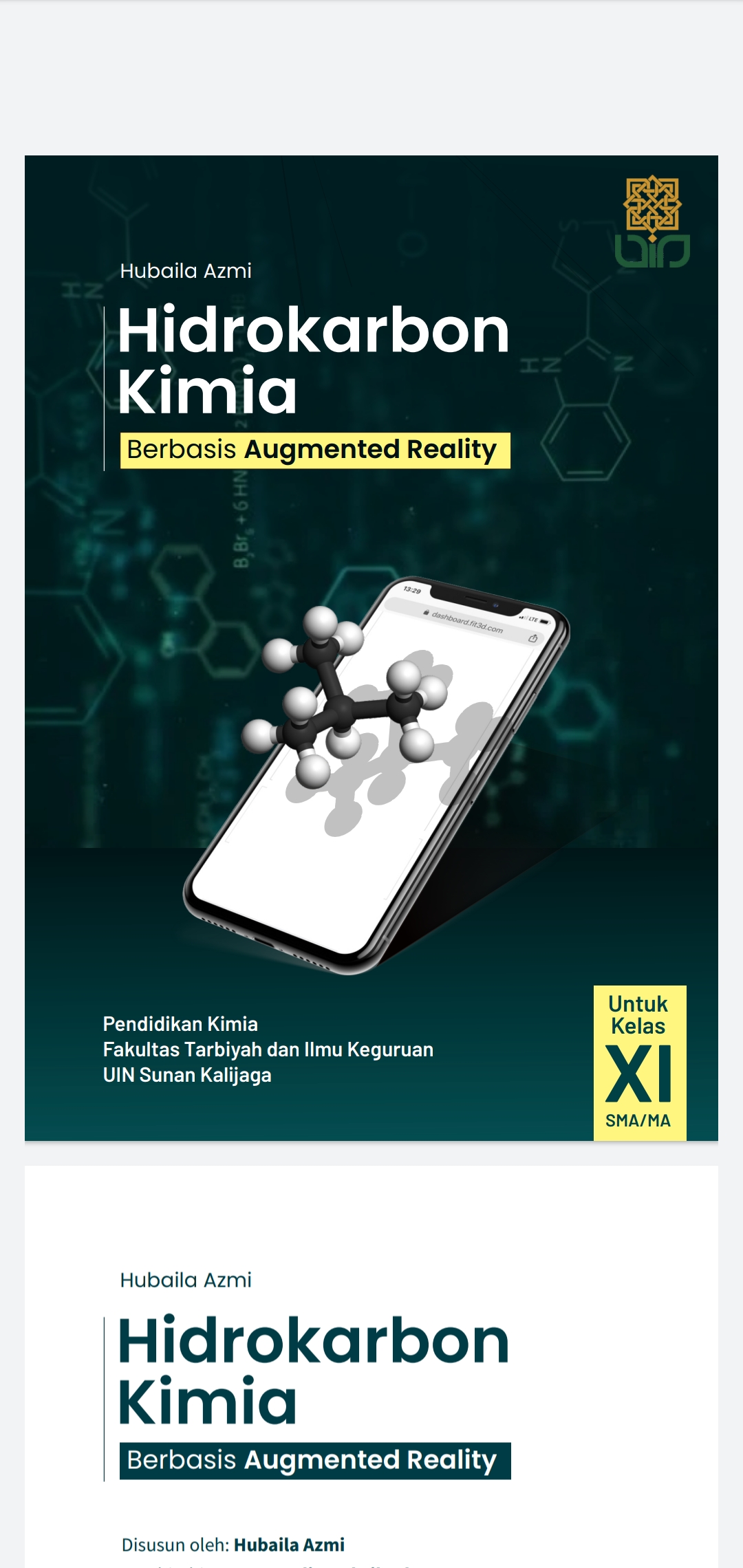 Media pembelajaran Kimia berbasis Augmented reality pada materi hidrokarbon Kimia SMA/MA kelas XI. Media pembelajaran kimia ini digunakan siswa sebagai alternatid media pembelajaran mandiri. Modul ini menyajikan beberapa bentuk molekul hidrokarbon dan bisa di scan melalu aplikasi yang telah kalian download. Dengan penggambaran hidrokarbon secara 3D diharapkan siswa lebih memahami bentuk hidrokarbon yang abstrak.